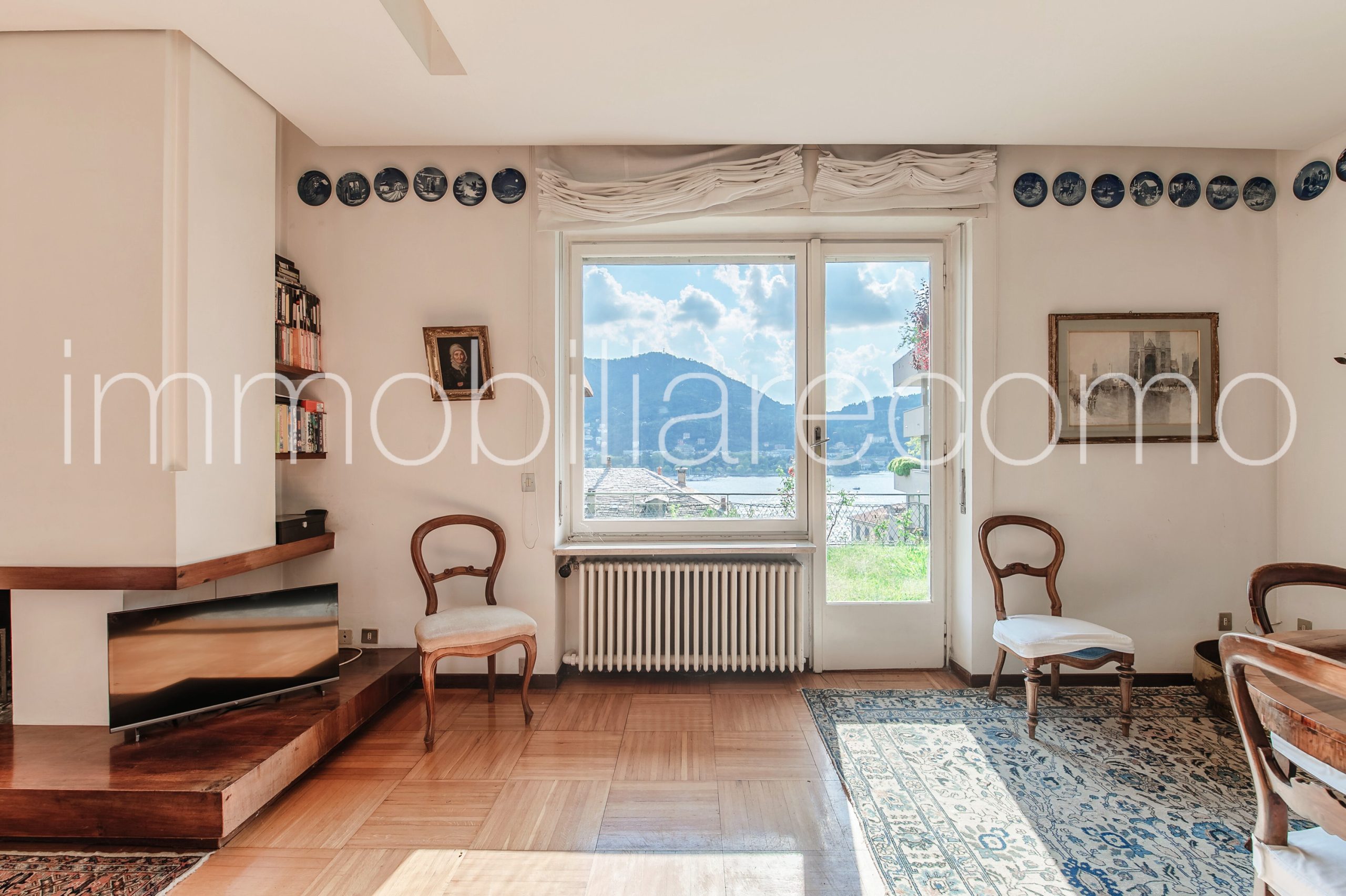 In posizione esclusiva, con vista panoramica sul primo bacino del lago, proponiamo soleggiato appartamento, sito al piano terreno di una villa , valorizzato da raro giardino affacciato sul lago.