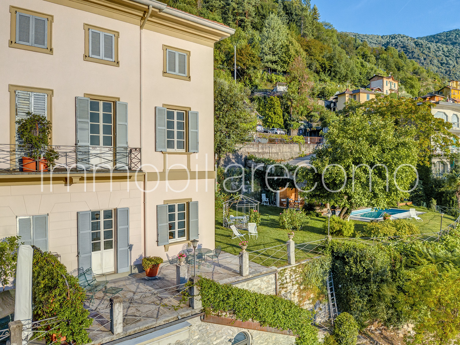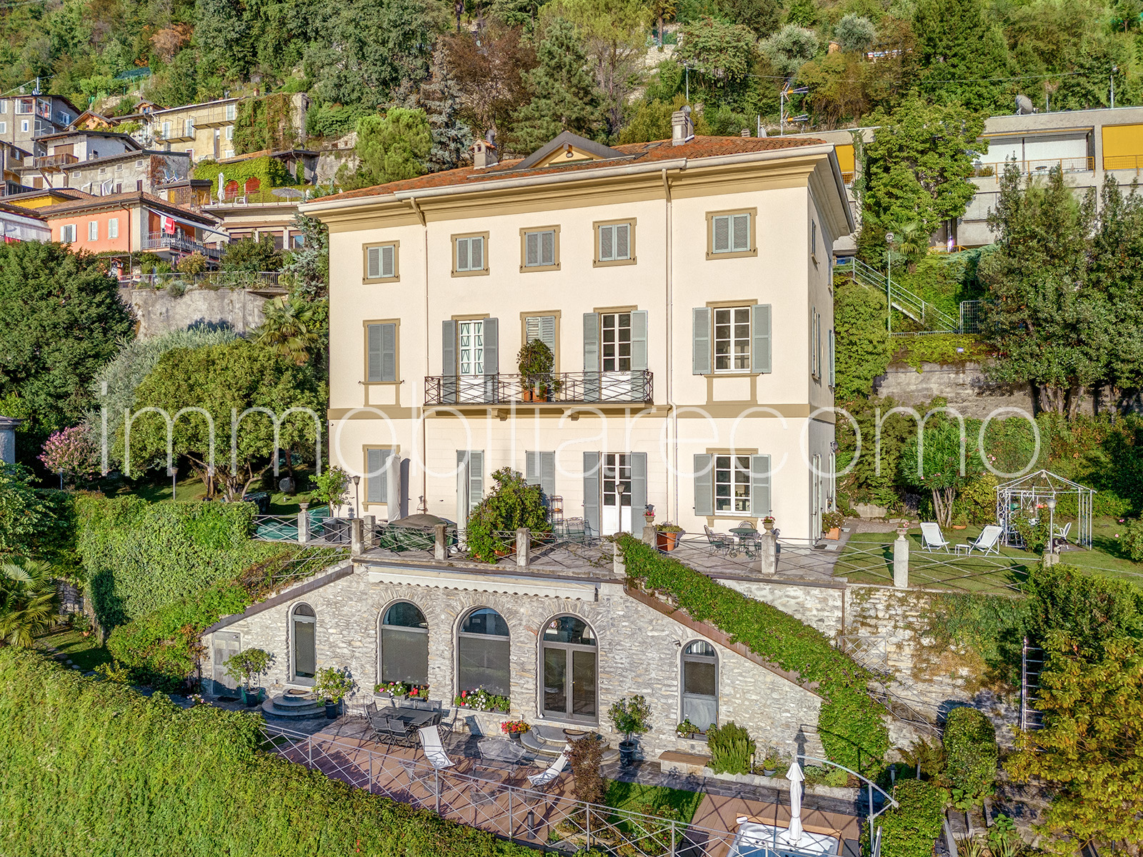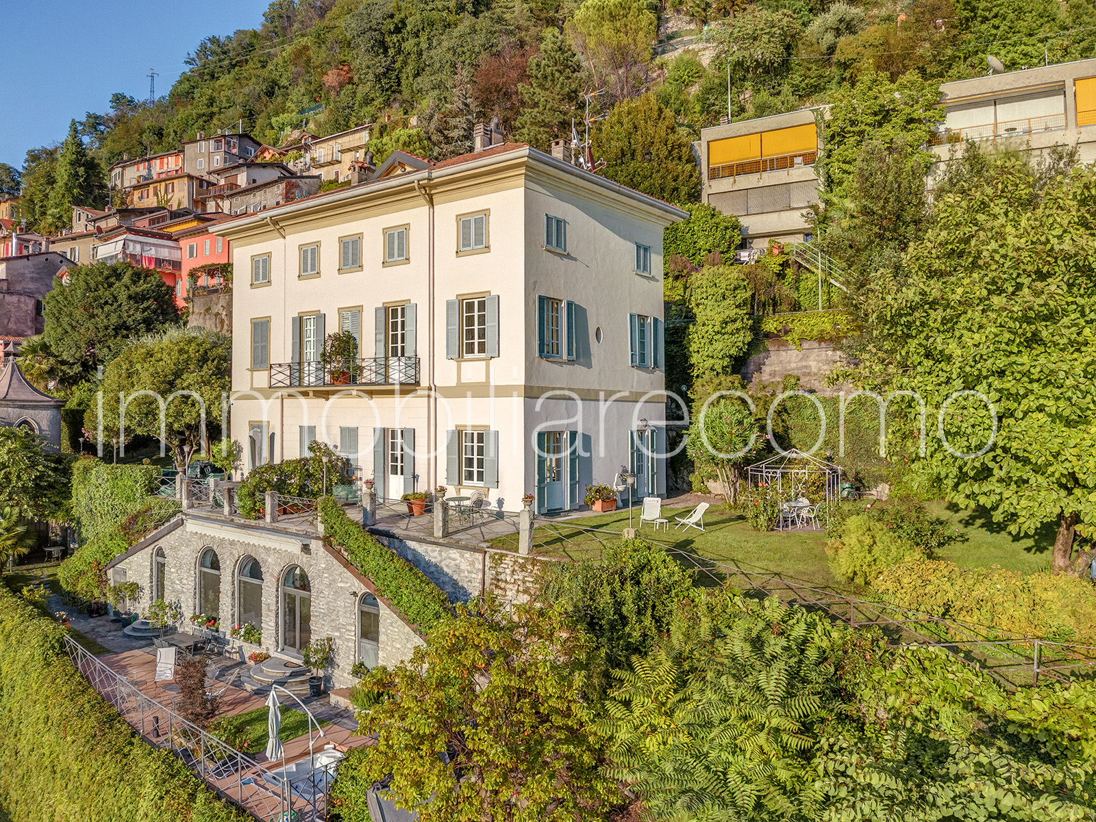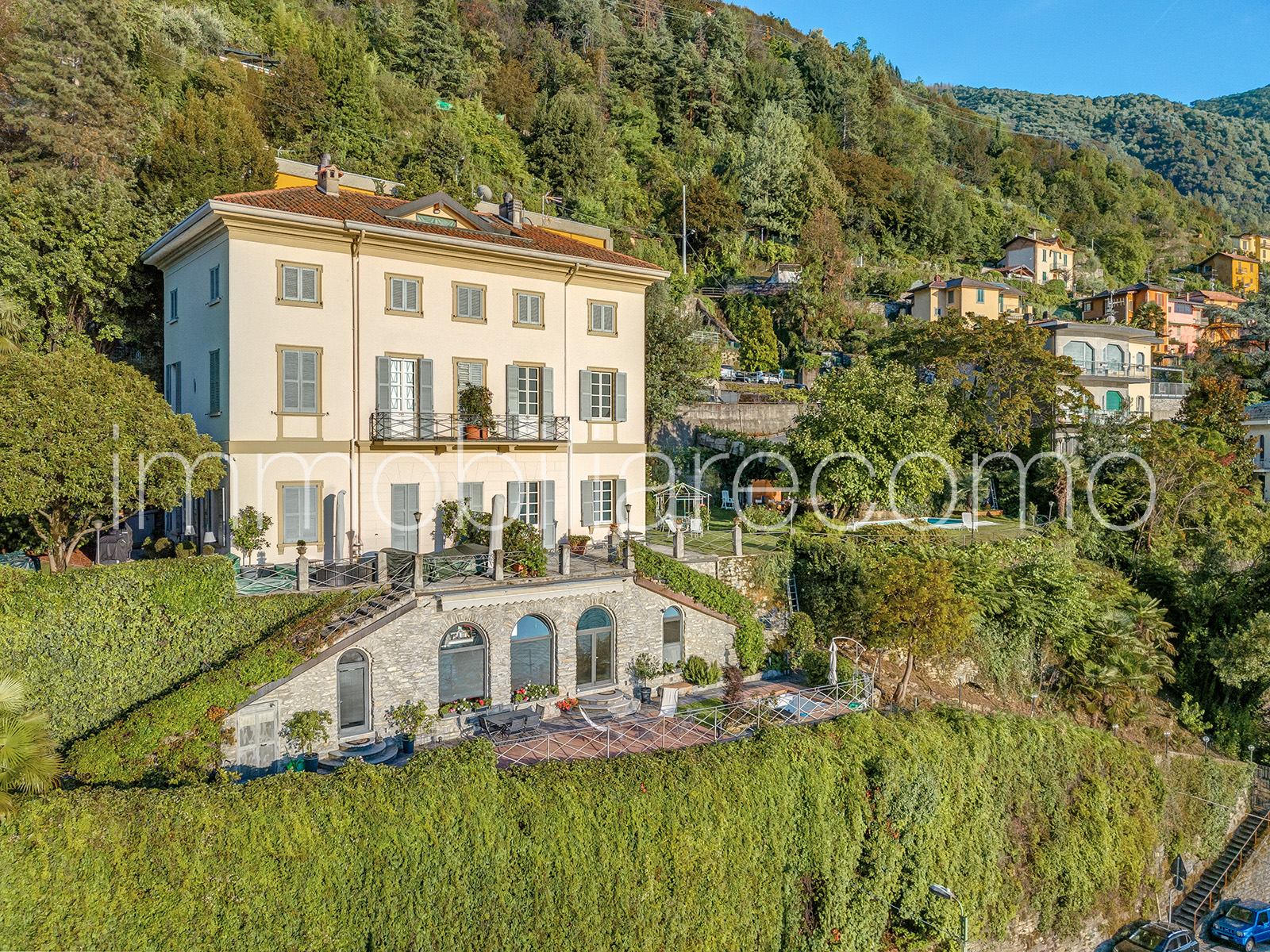 In una delle posizioni più suggestive e panoramiche del primo bacino del Lago di Como, proponiamo un’affascinante porzione di villa storica risalente al 1700, immersa in un contesto di rara bellezza paesaggistica. La proprietà gode di una posizione privilegiata e dominante, con una vista che abbraccia l’intero scenario del lago: di fronte si ammirano alcune delle ville più iconiche e prestigiose della sponda opposta, tra cui Villa d’Este, Villa Pizzo e Villa Fontanelle. Lo sguardo si estende inoltre verso la spettacolare cornice delle montagne che circondano il lago, creando uno scenario naturale di grande fascino che cambia continuamente con la luce e le stagioni. Grazie alla splendida esposizione sud-ovest, la proprietà gode di una luminosità straordinaria per tutta la giornata e offre tramonti tra i più suggestivi del lago. L’appartamento è circondato da un incantevole giardino privato e impreziosito da un’ampia terrazza panoramica affacciata direttamente sul lago, oltre ad una spettacolare piscina scenografica, perfettamente inserita nel paesaggio e ideale per momenti di relax in totale privacy. L’abitazione, ristrutturata con grande attenzione ai dettagli e alle finiture, offre circa 200 mq di superficie distribuiti su due livelli abitativi oltre al piano seminterrato. Al piano terra si trovano un accogliente ingresso, un luminoso soggiorno, la sala da pranzo con accesso diretto al giardino, la cucina con uscita all’esterno e un bagno ospiti. Il piano superiore ospita la camera padronale, due ulteriori camere e due bagni. Nel piano seminterrato, ambienti con antiche volte in pietra accolgono un’ampia cantina e la lavanderia, conferendo ulteriore carattere alla proprietà. Elemento estremamente raro per questa zona del lago, la proprietà dispone inoltre di quattro posti auto coperti, che consentono di raggiungere comodamente l’ingresso della casa. A pochi minuti dalla città di Como, questa dimora rappresenta un’opportunità davvero esclusiva: una residenza perfetta sia come elegante casa principale sia come raffinato rifugio sul lago, dove vivere il fascino senza tempo del Lago di Como.